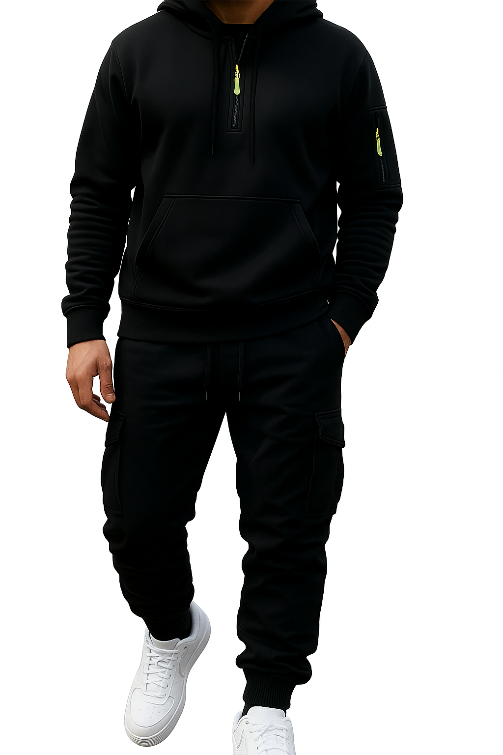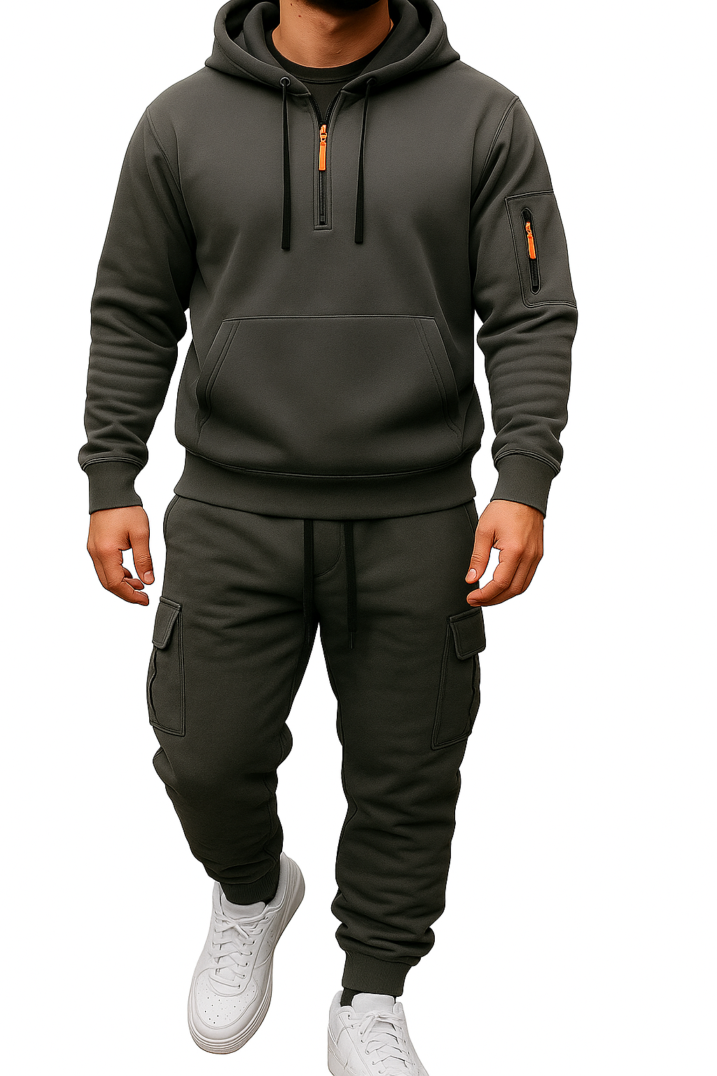 Stijlvolle hoodie- en broekenset in meerdere kleuren. Gemaakt voor comfort en warmte met lange mouwen, ritssluiting en functionele zakken. Perfecte keuze voor casual herfst- en winterdagen of buitenactiviteiten. Normale pasvorm en effen design voor een tijdloze look.